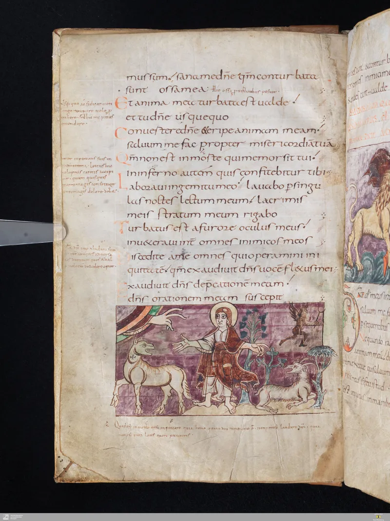 The Vulgate Psalter, illuminated at Saint-Germain-des-Prés c. 820–830. Folio 6v corresponds approximately to Psalm 1 in the Vulgate sequence.