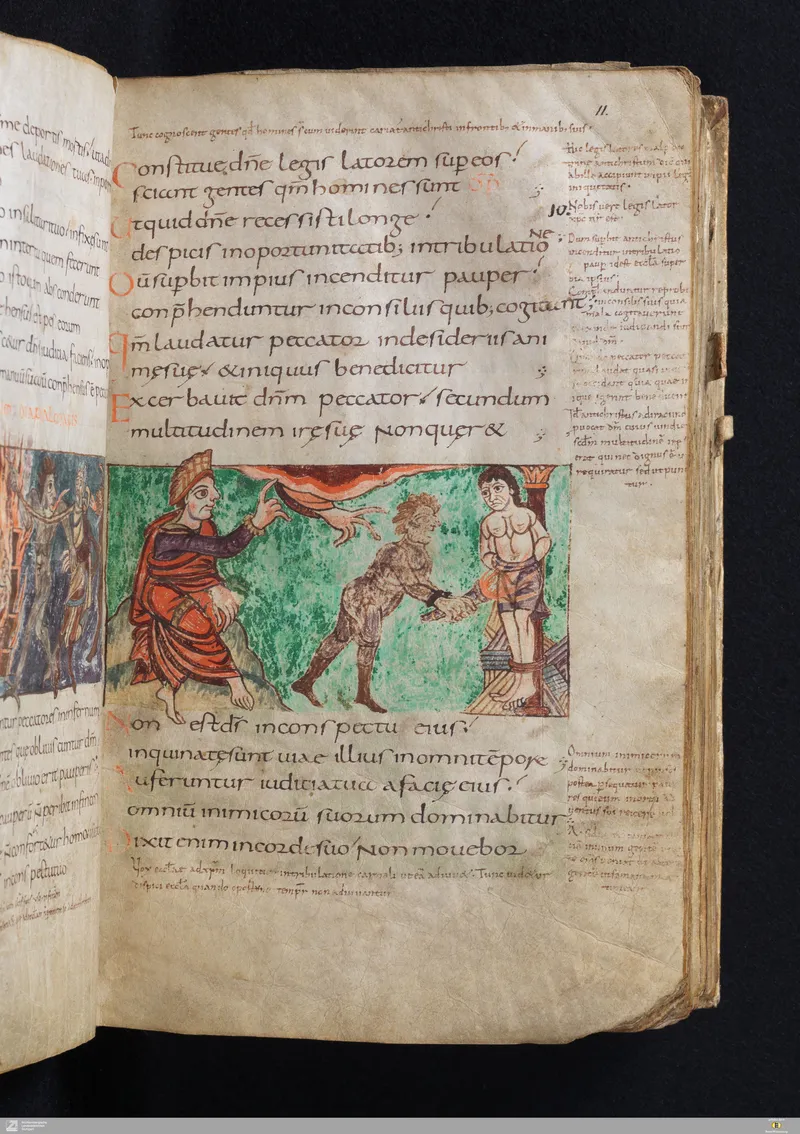 The Vulgate Psalter, illuminated at Saint-Germain-des-Prés c. 820–830. Folio 11r corresponds approximately to Psalm 5 in the Vulgate sequence.