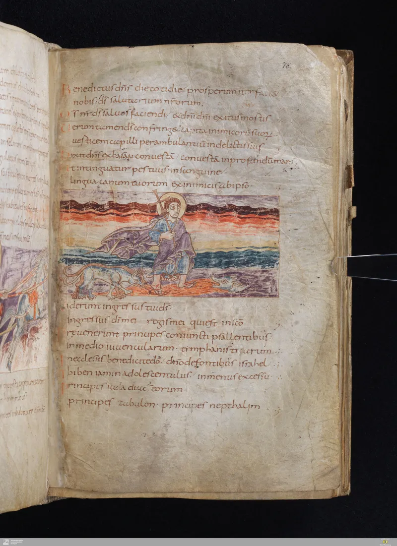 The Vulgate Psalter, illuminated at Saint-Germain-des-Prés c. 820–830. Folio 78r corresponds approximately to Psalm 68 in the Vulgate sequence.