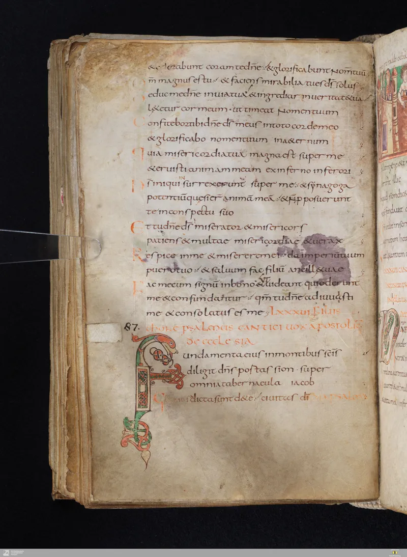 The Vulgate Psalter, illuminated at Saint-Germain-des-Prés c. 820–830. Folio 101v corresponds approximately to Psalm 90 in the Vulgate sequence.