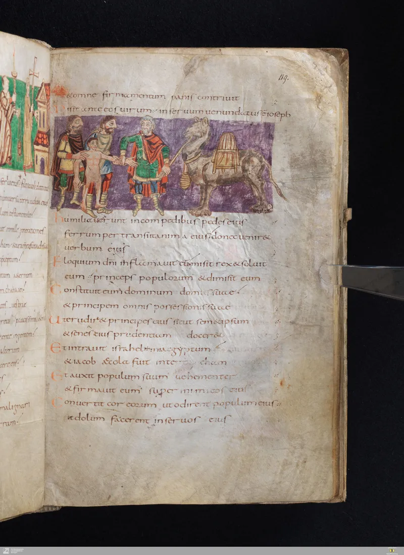 The Vulgate Psalter, illuminated at Saint-Germain-des-Prés c. 820–830. Folio 119r corresponds approximately to Psalm 107 in the Vulgate sequence.