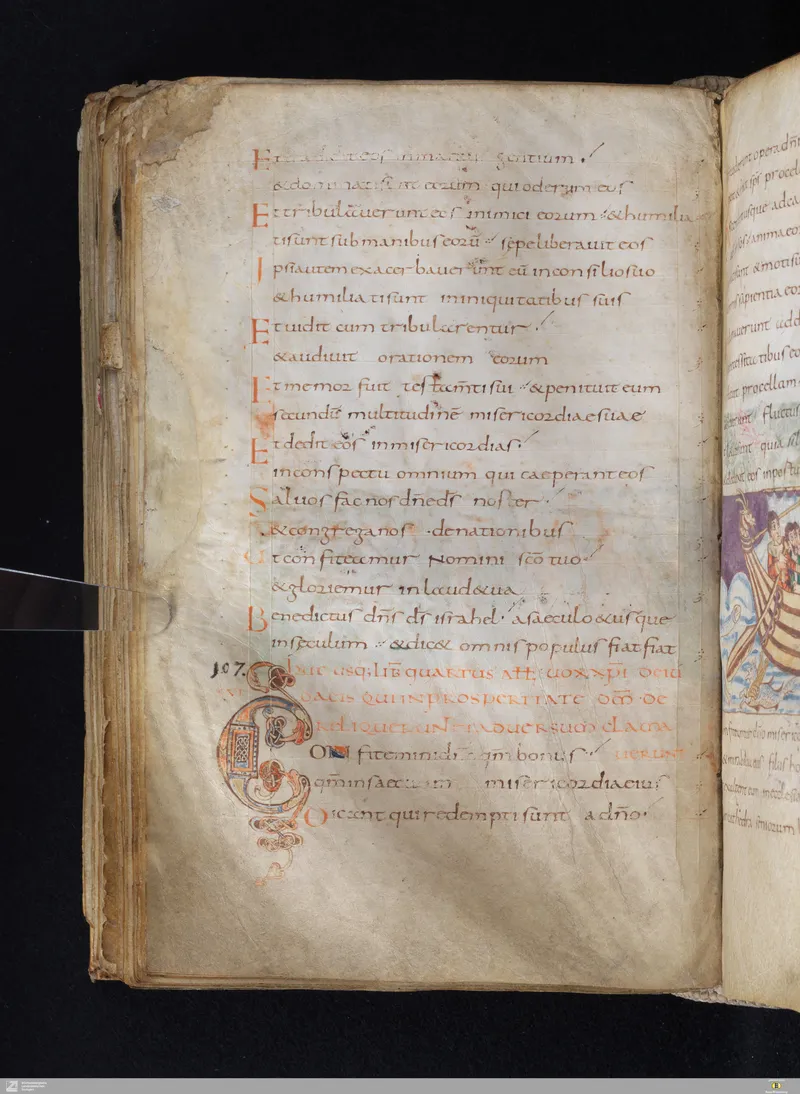 The Vulgate Psalter, illuminated at Saint-Germain-des-Prés c. 820–830. Folio 122v corresponds approximately to Psalm 110 in the Vulgate sequence.
