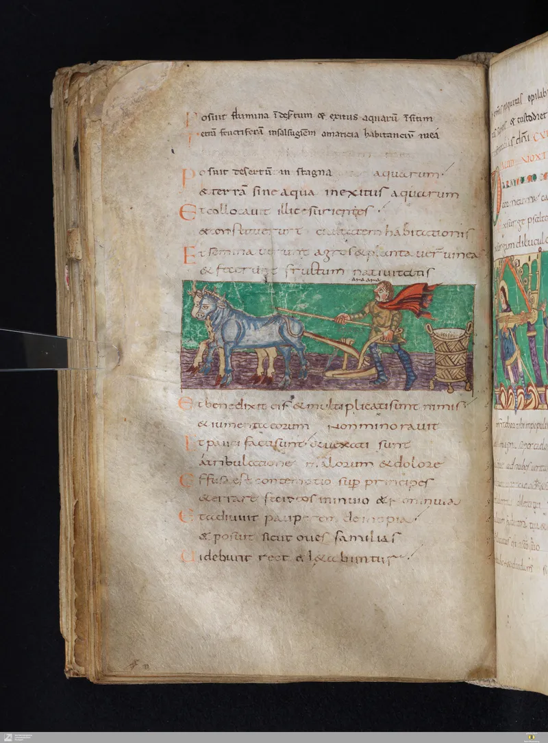 The Vulgate Psalter, illuminated at Saint-Germain-des-Prés c. 820–830. Folio 124v corresponds approximately to Psalm 112 in the Vulgate sequence.