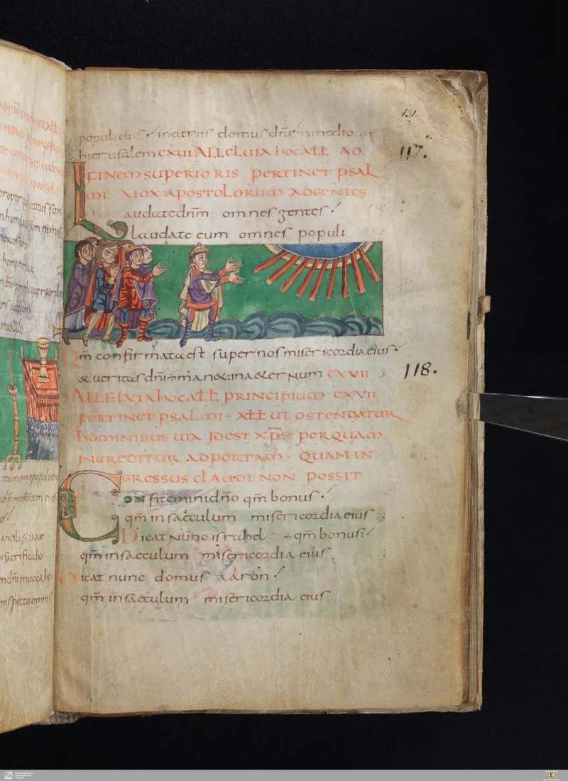 The Vulgate Psalter, illuminated at Saint-Germain-des-Prés c. 820–830. Folio 131r corresponds approximately to Psalm 118 in the Vulgate sequence.