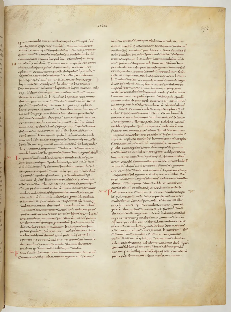 Folio 755 of the First Bible of Charles the Bald, an extant Carolingian Vulgate manuscript from the Tours scriptorium (c. 845). Approximately corresponds to 1 Corinthians 6 in Vulgate book order. The folio shows the actual ninth-century Latin text and decoration as it would have been read in the Carolingian court.