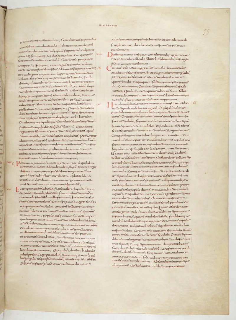 Folio 157 of the First Bible of Charles the Bald, an extant Carolingian Vulgate manuscript from the Tours scriptorium (c. 845). Approximately corresponds to 1 Samuel 2 in Vulgate book order. The folio shows the actual ninth-century Latin text and decoration as it would have been read in the Carolingian court.