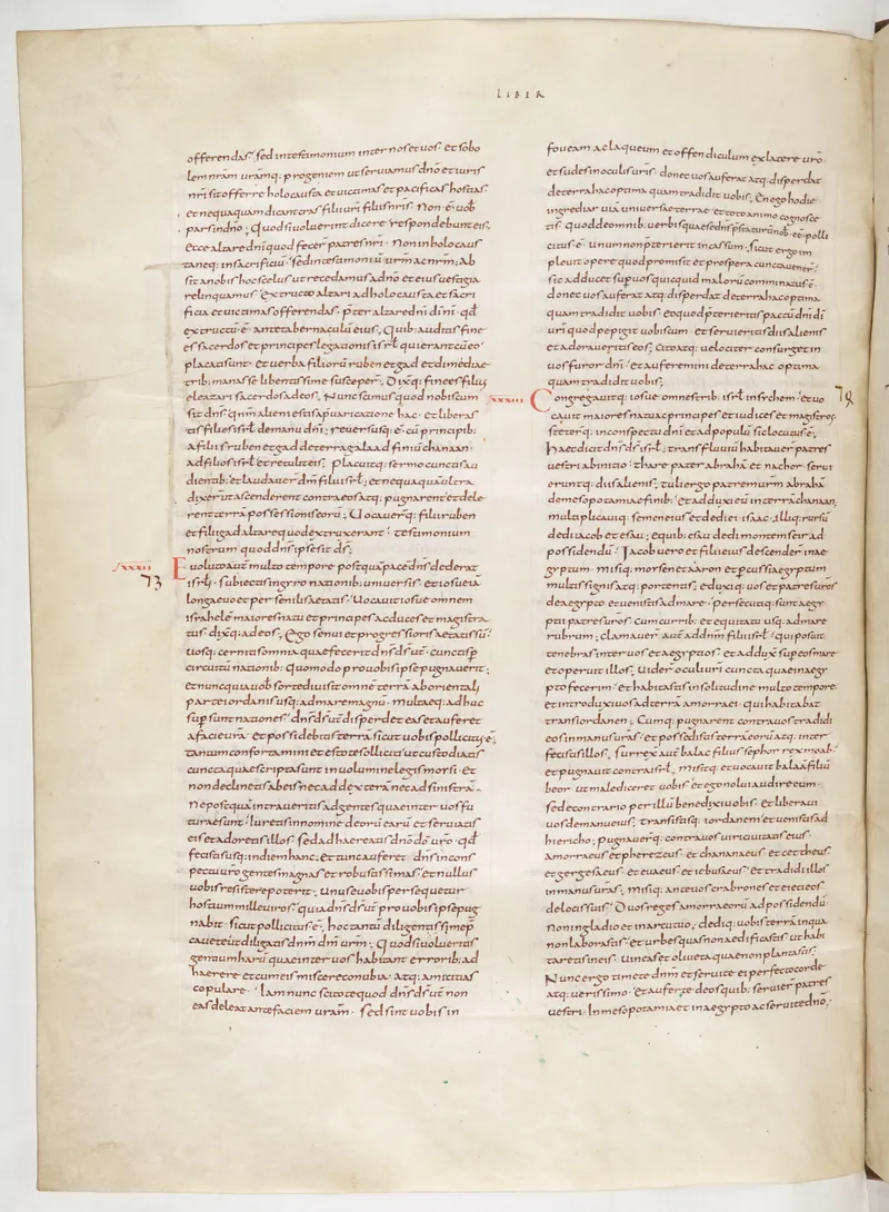 Folio 168 of the First Bible of Charles the Bald, an extant Carolingian Vulgate manuscript from the Tours scriptorium (c. 845). Approximately corresponds to 1 Samuel 21 in Vulgate book order. The folio shows the actual ninth-century Latin text and decoration as it would have been read in the Carolingian court.