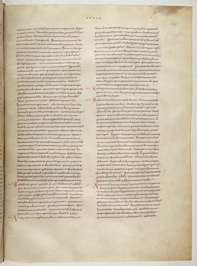 Folio 783 of the First Bible of Charles the Bald, an extant Carolingian Vulgate manuscript from the Tours scriptorium (c. 845). Approximately corresponds to 1 Thessalonians 2 in Vulgate book order. The folio shows the actual ninth-century Latin text and decoration as it would have been read in the Carolingian court.