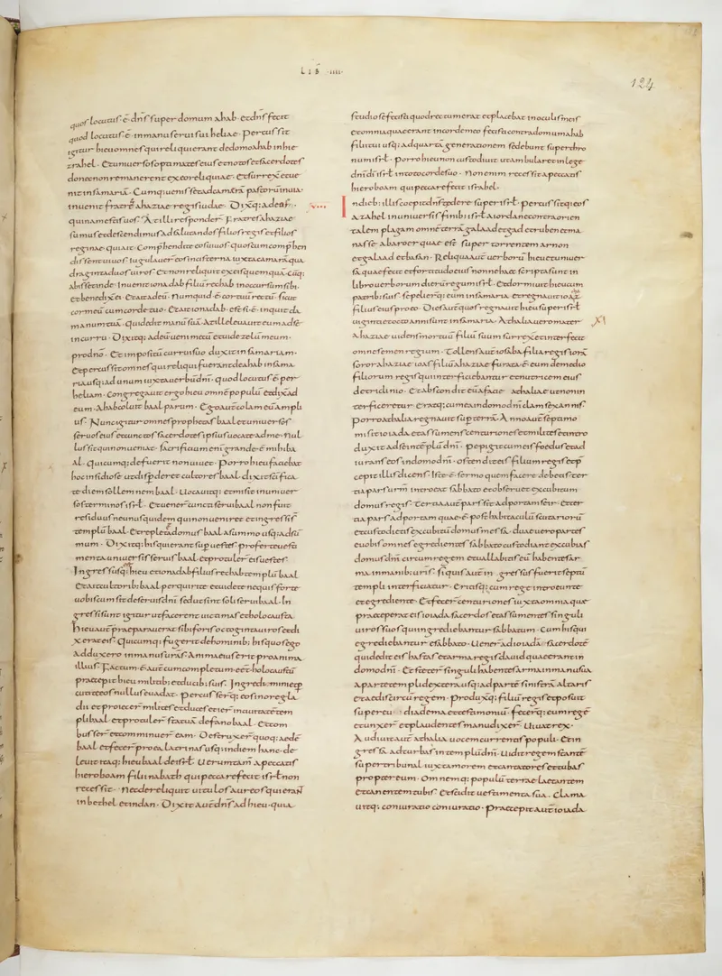 Folio 255 of the First Bible of Charles the Bald, an extant Carolingian Vulgate manuscript from the Tours scriptorium (c. 845). Approximately corresponds to 2 Chronicles 30 in Vulgate book order. The folio shows the actual ninth-century Latin text and decoration as it would have been read in the Carolingian court.