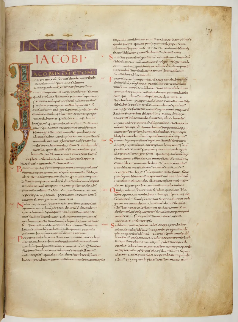 Folio 763 of the First Bible of Charles the Bald, an extant Carolingian Vulgate manuscript from the Tours scriptorium (c. 845). Approximately corresponds to 2 Corinthians 2 in Vulgate book order. The folio shows the actual ninth-century Latin text and decoration as it would have been read in the Carolingian court.