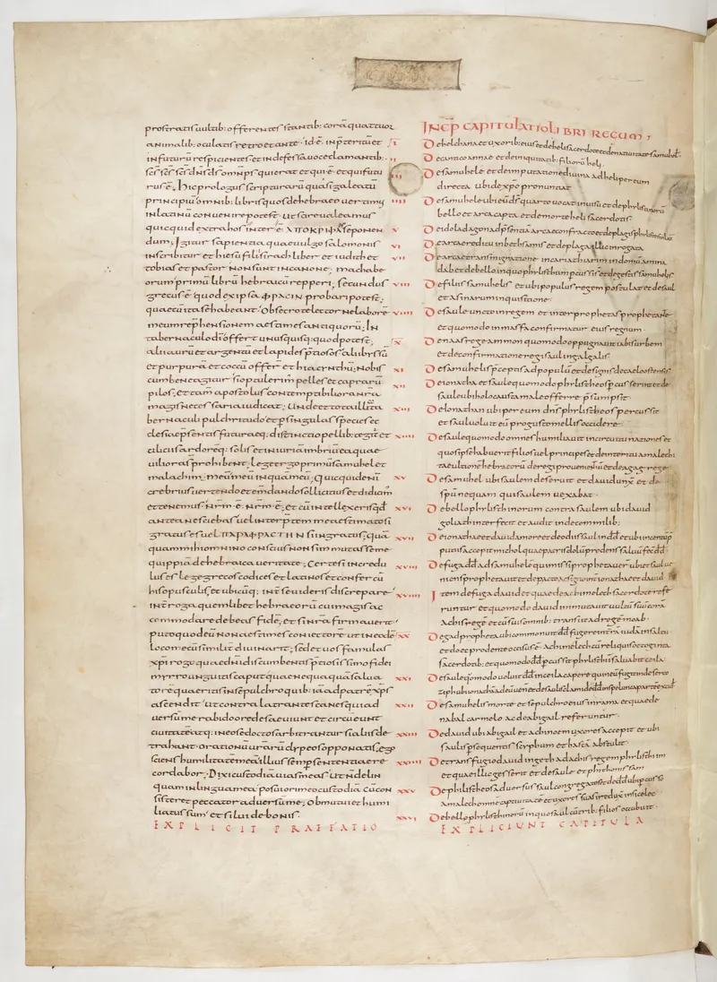Folio 188 of the First Bible of Charles the Bald, an extant Carolingian Vulgate manuscript from the Tours scriptorium (c. 845). Approximately corresponds to 2 Samuel 22 in Vulgate book order. The folio shows the actual ninth-century Latin text and decoration as it would have been read in the Carolingian court.