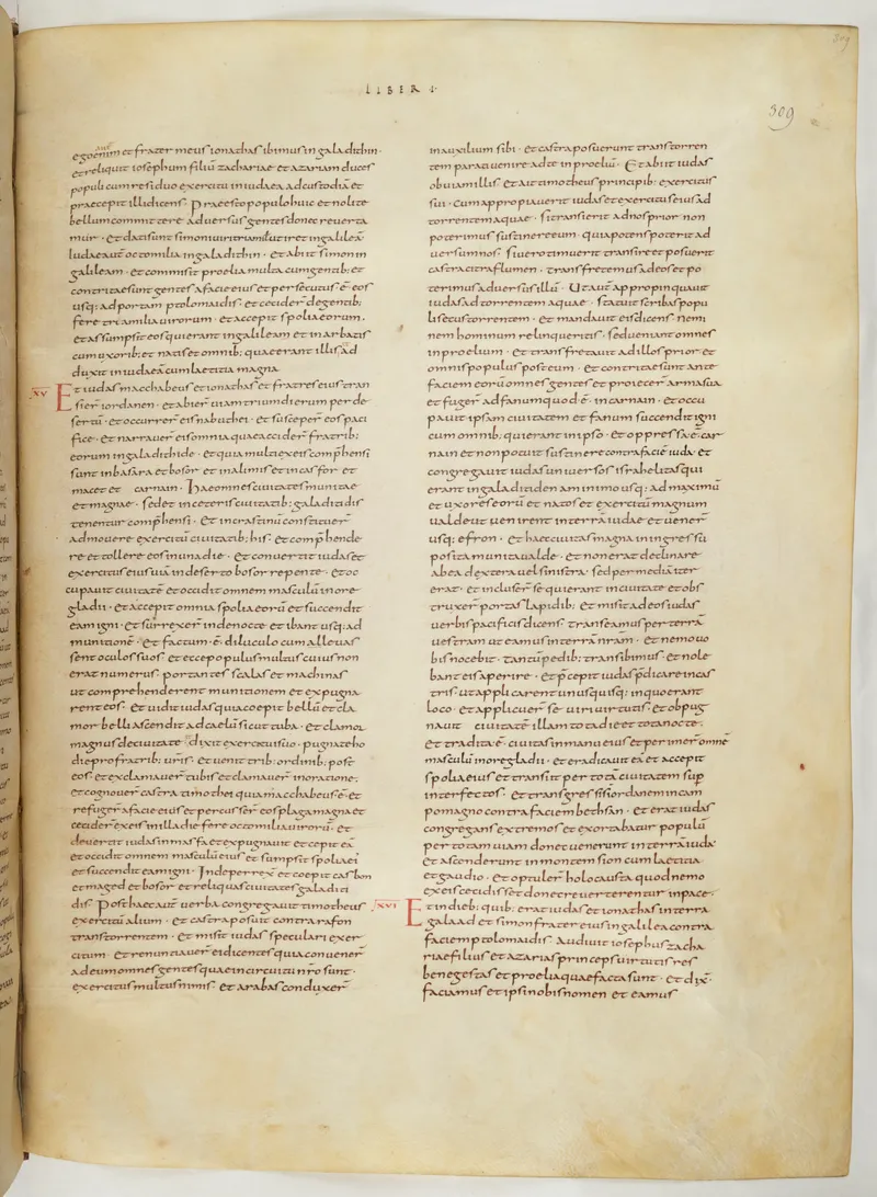Folio 625 of the First Bible of Charles the Bald, an extant Carolingian Vulgate manuscript from the Tours scriptorium (c. 845). Approximately corresponds to Amos 9 in Vulgate book order. The folio shows the actual ninth-century Latin text and decoration as it would have been read in the Carolingian court.