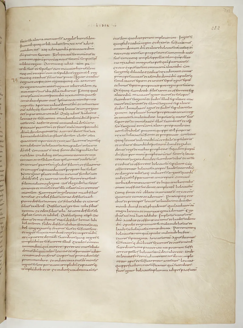 Folio 571 of the First Bible of Charles the Bald, an extant Carolingian Vulgate manuscript from the Tours scriptorium (c. 845). Approximately corresponds to Baruch 5 in Vulgate book order. The folio shows the actual ninth-century Latin text and decoration as it would have been read in the Carolingian court.