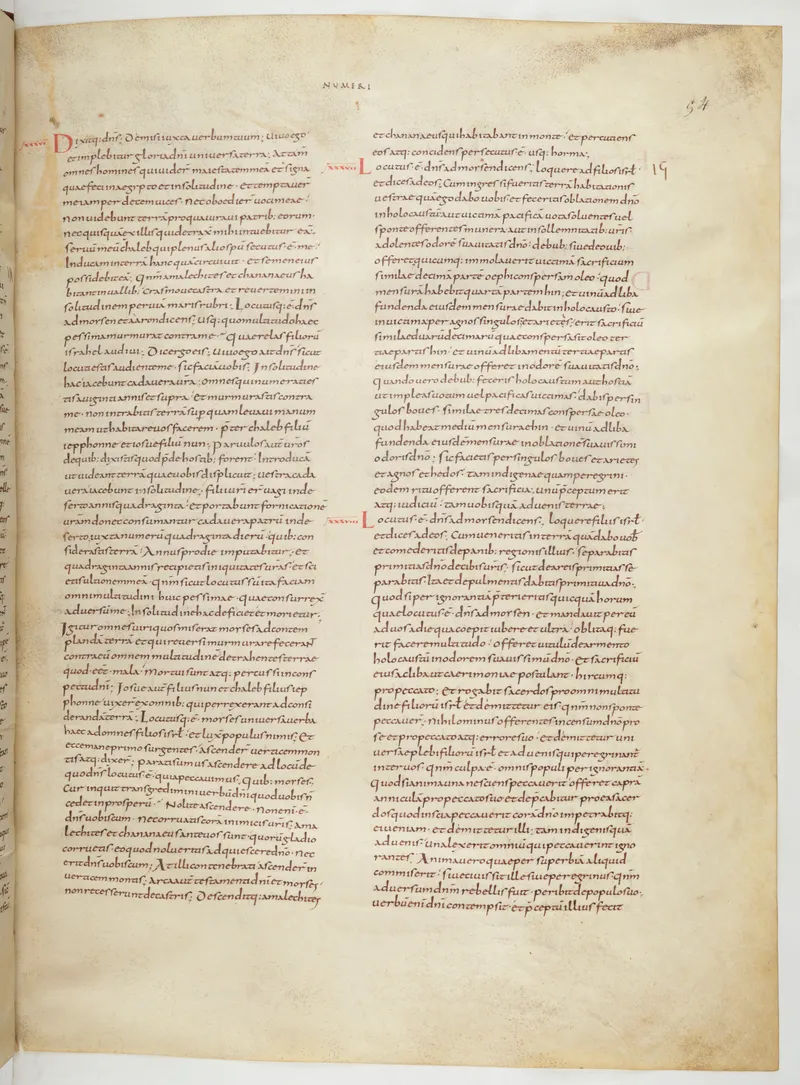 Folio 115 of the First Bible of Charles the Bald, an extant Carolingian Vulgate manuscript from the Tours scriptorium (c. 845). Approximately corresponds to Deuteronomy 18 in Vulgate book order. The folio shows the actual ninth-century Latin text and decoration as it would have been read in the Carolingian court.