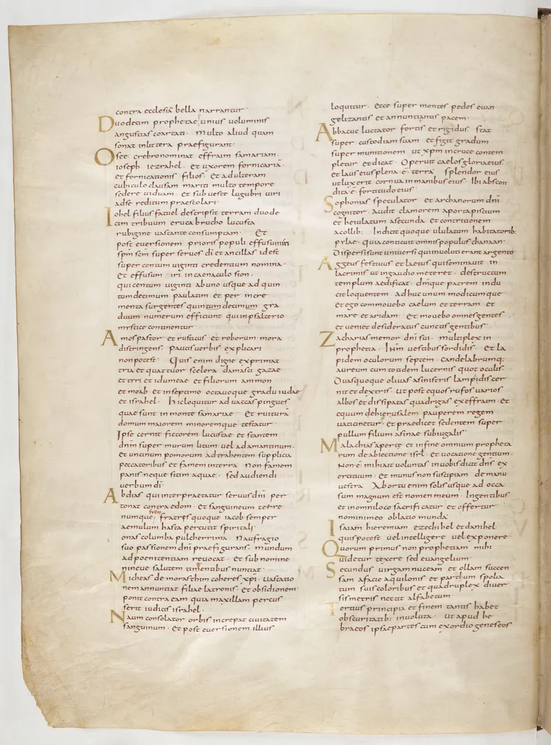 Folio 20 of the First Bible of Charles the Bald, an extant Carolingian Vulgate manuscript from the Tours scriptorium (c. 845). Approximately corresponds to Genesis 17 in Vulgate book order. The folio shows the actual ninth-century Latin text and decoration as it would have been read in the Carolingian court.