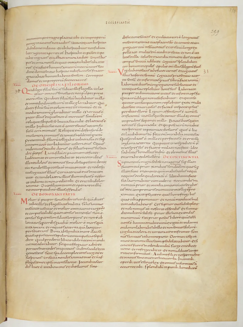 Folio 525 of the First Bible of Charles the Bald, an extant Carolingian Vulgate manuscript from the Tours scriptorium (c. 845). Approximately corresponds to Isaiah 54 in Vulgate book order. The folio shows the actual ninth-century Latin text and decoration as it would have been read in the Carolingian court.