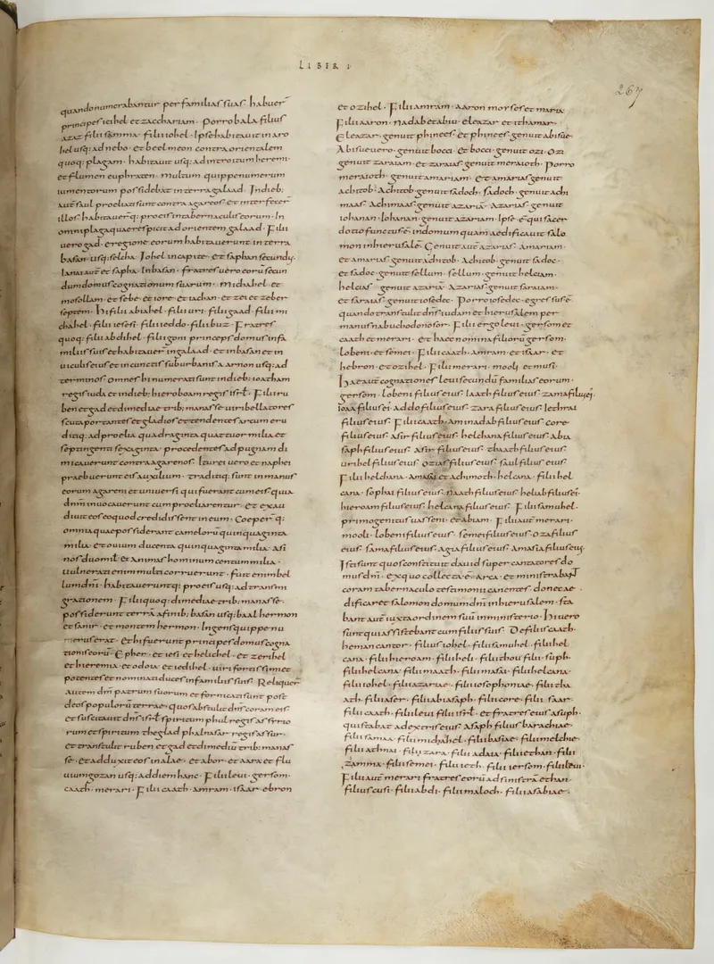 Folio 541 of the First Bible of Charles the Bald, an extant Carolingian Vulgate manuscript from the Tours scriptorium (c. 845). Approximately corresponds to Jeremiah 14 in Vulgate book order. The folio shows the actual ninth-century Latin text and decoration as it would have been read in the Carolingian court.