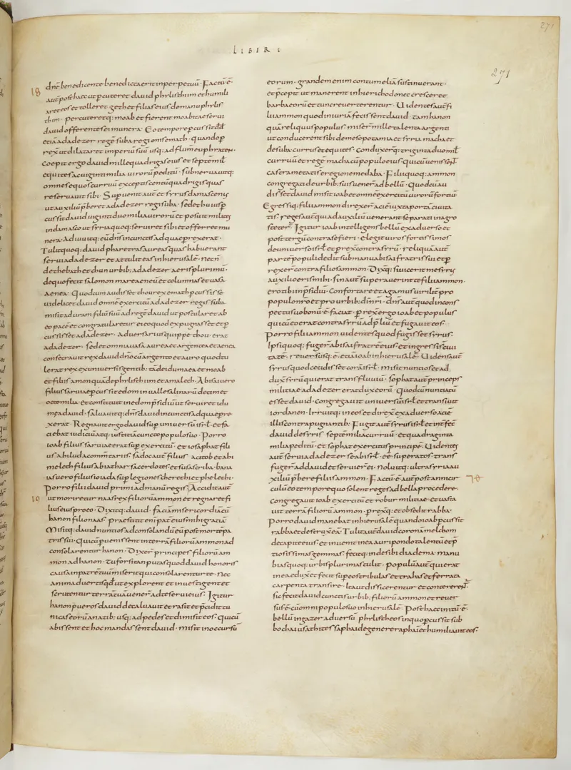 Folio 549 of the First Bible of Charles the Bald, an extant Carolingian Vulgate manuscript from the Tours scriptorium (c. 845). Approximately corresponds to Jeremiah 27 in Vulgate book order. The folio shows the actual ninth-century Latin text and decoration as it would have been read in the Carolingian court.