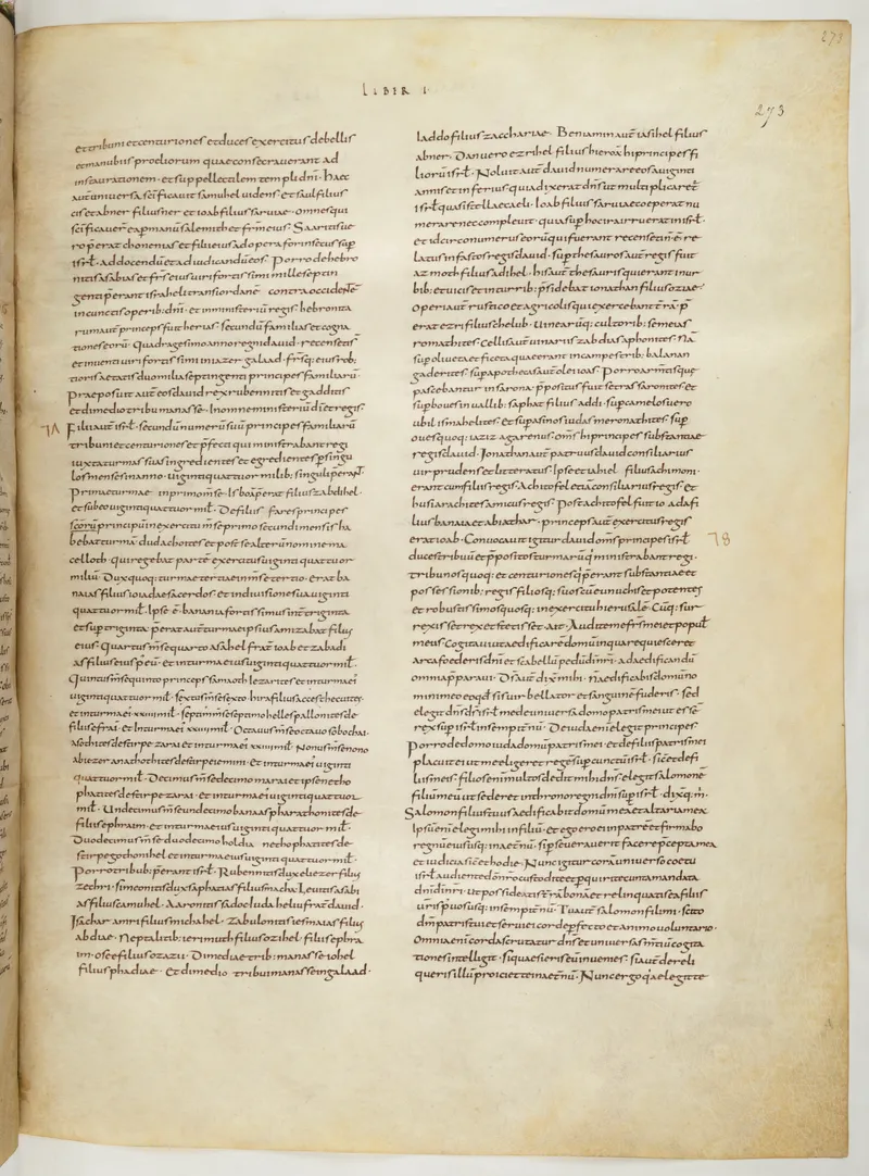 Folio 553 of the First Bible of Charles the Bald, an extant Carolingian Vulgate manuscript from the Tours scriptorium (c. 845). Approximately corresponds to Jeremiah 33 in Vulgate book order. The folio shows the actual ninth-century Latin text and decoration as it would have been read in the Carolingian court.