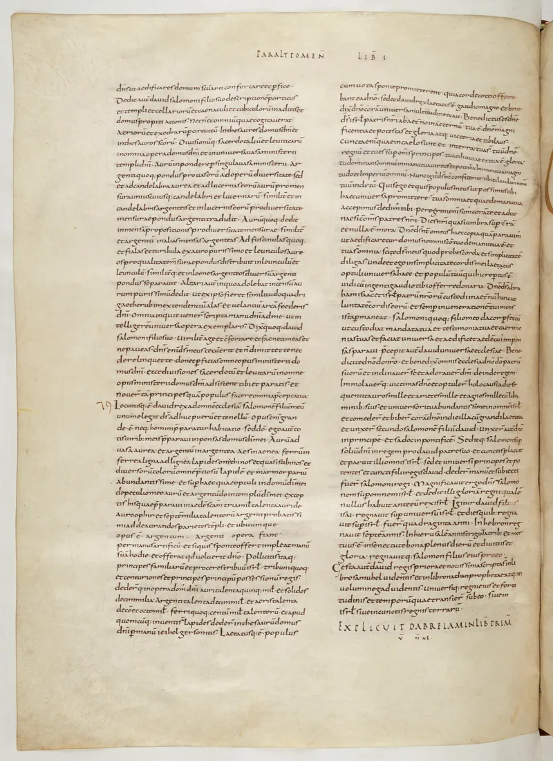 Folio 554 of the First Bible of Charles the Bald, an extant Carolingian Vulgate manuscript from the Tours scriptorium (c. 845). Approximately corresponds to Jeremiah 35 in Vulgate book order. The folio shows the actual ninth-century Latin text and decoration as it would have been read in the Carolingian court.