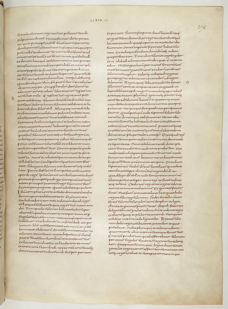 Folio 559 of the First Bible of Charles the Bald, an extant Carolingian Vulgate manuscript from the Tours scriptorium (c. 845). Approximately corresponds to Jeremiah 43 in Vulgate book order. The folio shows the actual ninth-century Latin text and decoration as it would have been read in the Carolingian court.