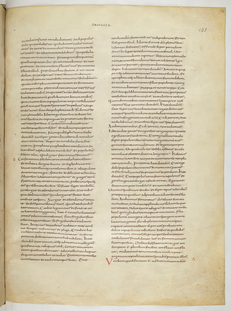 Folio 303 of the First Bible of Charles the Bald, an extant Carolingian Vulgate manuscript from the Tours scriptorium (c. 845). Approximately corresponds to Job 9 in Vulgate book order. The folio shows the actual ninth-century Latin text and decoration as it would have been read in the Carolingian court.