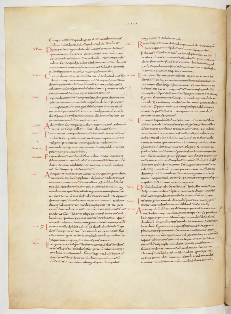 Folio 138 of the First Bible of Charles the Bald, an extant Carolingian Vulgate manuscript from the Tours scriptorium (c. 845). Approximately corresponds to Joshua 21 in Vulgate book order. The folio shows the actual ninth-century Latin text and decoration as it would have been read in the Carolingian court.