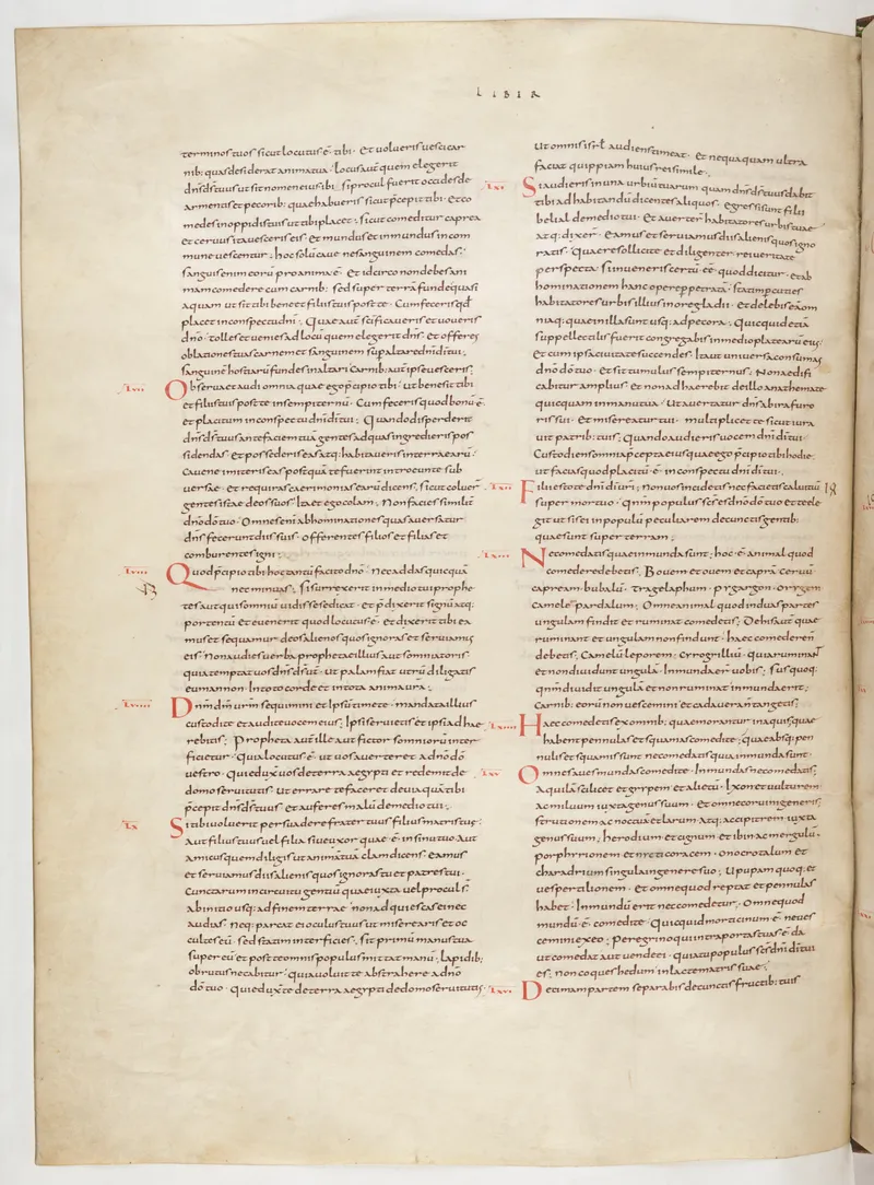 Folio 140 of the First Bible of Charles the Bald, an extant Carolingian Vulgate manuscript from the Tours scriptorium (c. 845). Approximately corresponds to Joshua 24 in Vulgate book order. The folio shows the actual ninth-century Latin text and decoration as it would have been read in the Carolingian court.