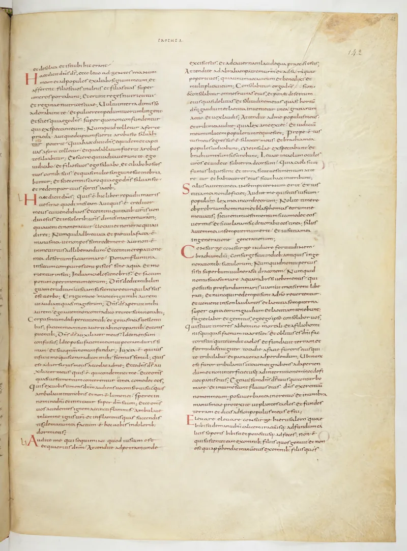 Folio 291 of the First Bible of Charles the Bald, an extant Carolingian Vulgate manuscript from the Tours scriptorium (c. 845). Approximately corresponds to Judith 15 in Vulgate book order. The folio shows the actual ninth-century Latin text and decoration as it would have been read in the Carolingian court.