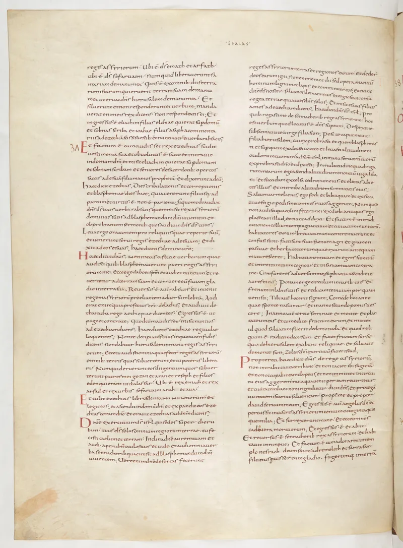 Folio 284 of the First Bible of Charles the Bald, an extant Carolingian Vulgate manuscript from the Tours scriptorium (c. 845). Approximately corresponds to Judith 4 in Vulgate book order. The folio shows the actual ninth-century Latin text and decoration as it would have been read in the Carolingian court.