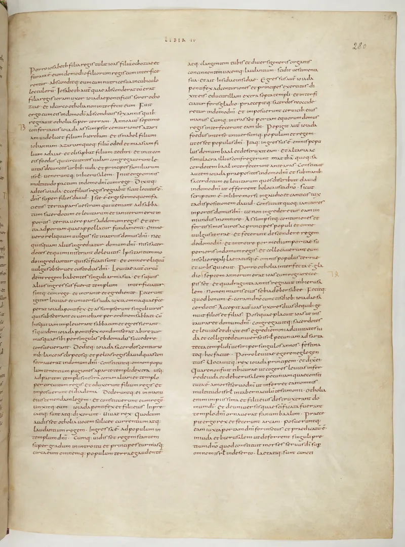 Folio 567 of the First Bible of Charles the Bald, an extant Carolingian Vulgate manuscript from the Tours scriptorium (c. 845). Approximately corresponds to Lamentations 4 in Vulgate book order. The folio shows the actual ninth-century Latin text and decoration as it would have been read in the Carolingian court.