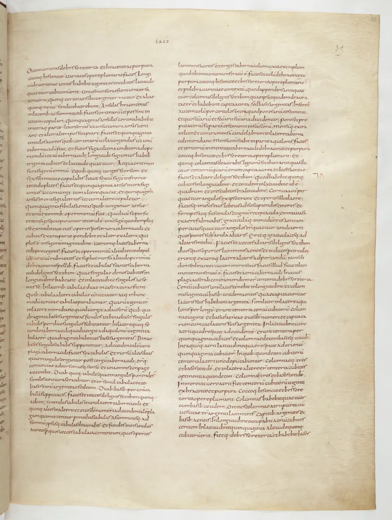 Folio 77 of the First Bible of Charles the Bald, an extant Carolingian Vulgate manuscript from the Tours scriptorium (c. 845). Approximately corresponds to Leviticus 19 in Vulgate book order. The folio shows the actual ninth-century Latin text and decoration as it would have been read in the Carolingian court.