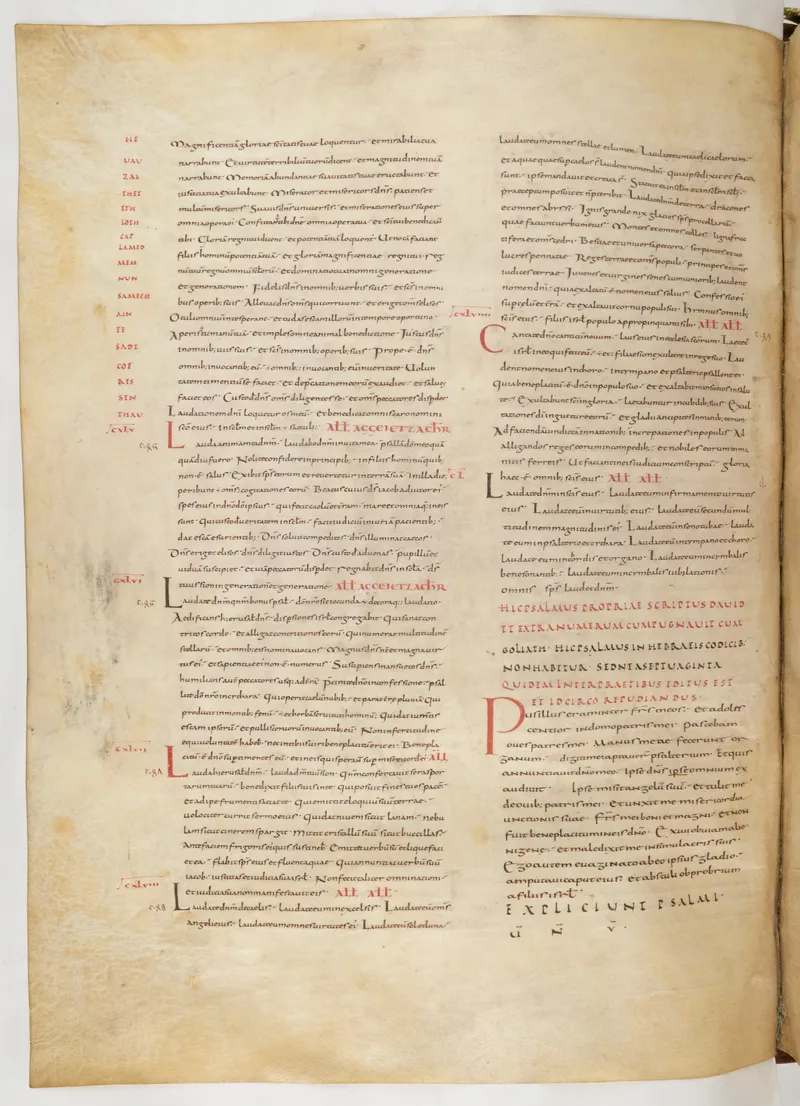 Folio 472 of the First Bible of Charles the Bald, an extant Carolingian Vulgate manuscript from the Tours scriptorium (c. 845). Approximately corresponds to Sirach 20 in Vulgate book order. The folio shows the actual ninth-century Latin text and decoration as it would have been read in the Carolingian court.