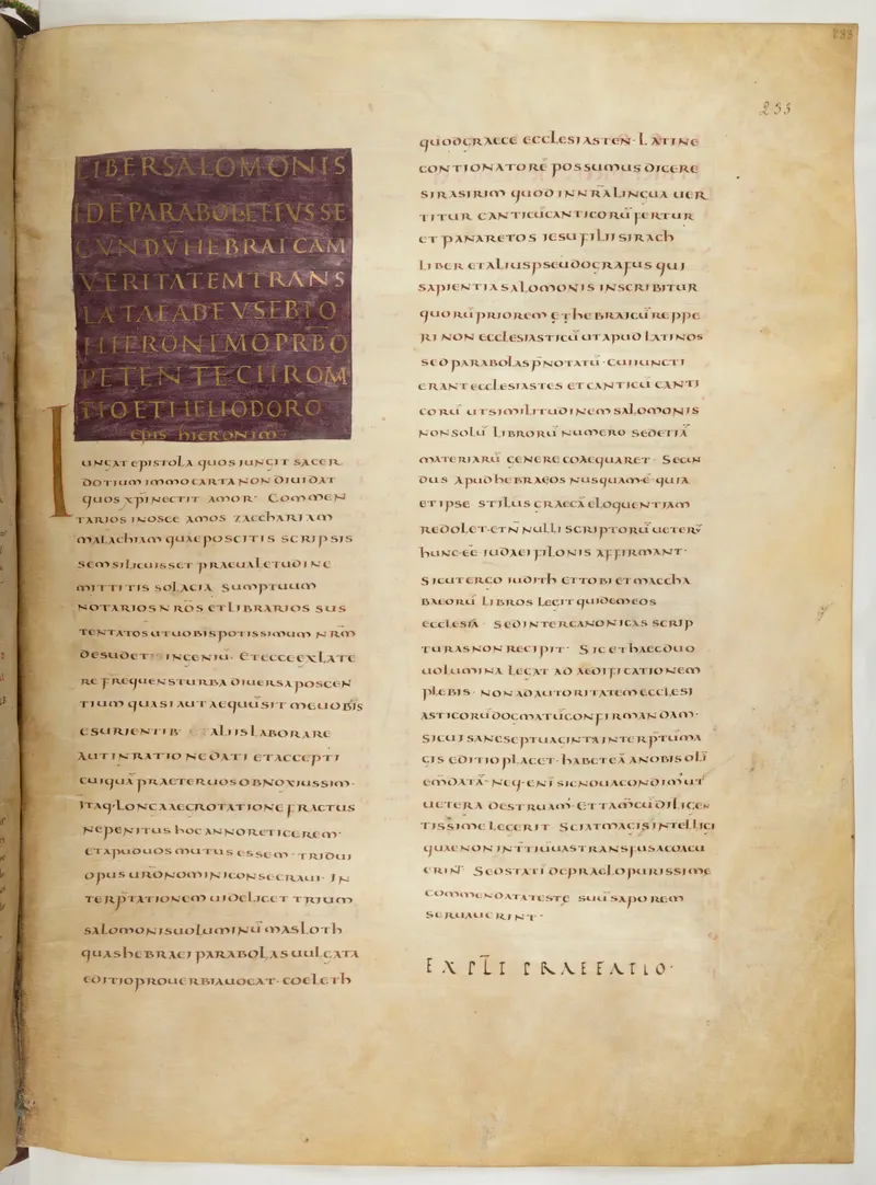 Folio 473 of the First Bible of Charles the Bald, an extant Carolingian Vulgate manuscript from the Tours scriptorium (c. 845). Approximately corresponds to Sirach 21 in Vulgate book order. The folio shows the actual ninth-century Latin text and decoration as it would have been read in the Carolingian court.