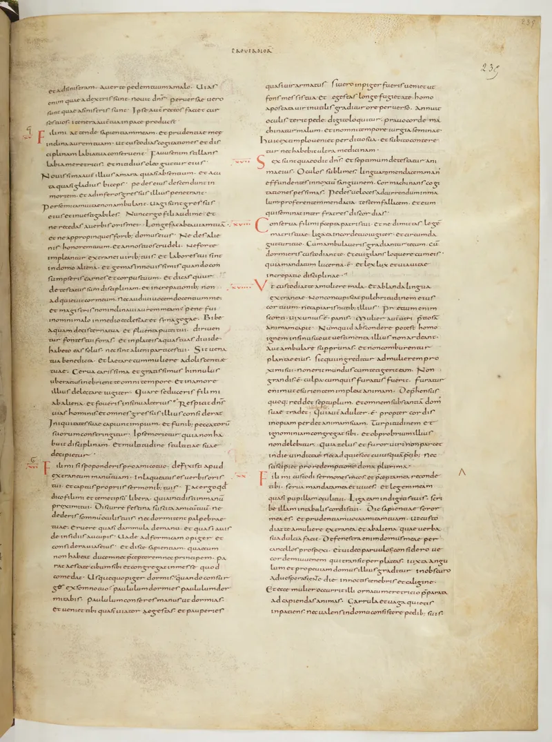 Folio 477 of the First Bible of Charles the Bald, an extant Carolingian Vulgate manuscript from the Tours scriptorium (c. 845). Approximately corresponds to Sirach 28 in Vulgate book order. The folio shows the actual ninth-century Latin text and decoration as it would have been read in the Carolingian court.