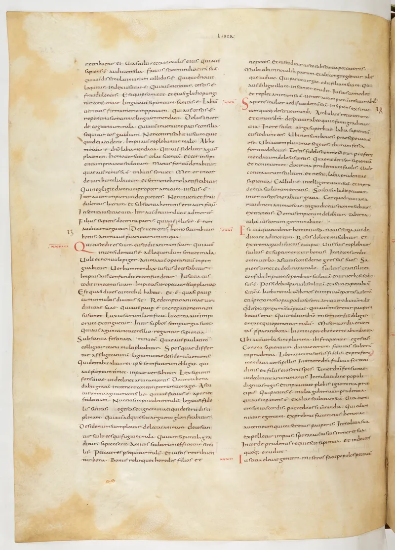 Folio 480 of the First Bible of Charles the Bald, an extant Carolingian Vulgate manuscript from the Tours scriptorium (c. 845). Approximately corresponds to Sirach 33 in Vulgate book order. The folio shows the actual ninth-century Latin text and decoration as it would have been read in the Carolingian court.