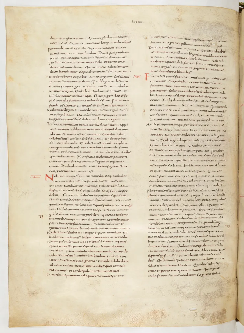 Folio 484 of the First Bible of Charles the Bald, an extant Carolingian Vulgate manuscript from the Tours scriptorium (c. 845). Approximately corresponds to Sirach 39 in Vulgate book order. The folio shows the actual ninth-century Latin text and decoration as it would have been read in the Carolingian court.