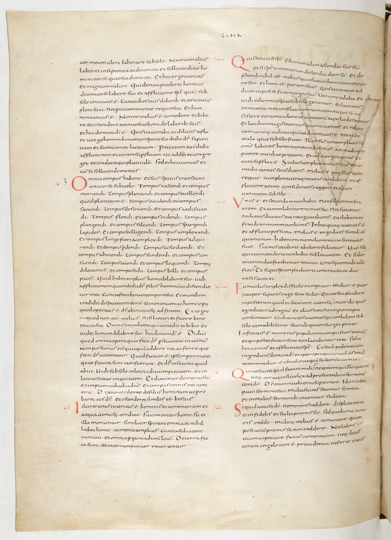 Folio 490 of the First Bible of Charles the Bald, an extant Carolingian Vulgate manuscript from the Tours scriptorium (c. 845). Approximately corresponds to Sirach 48 in Vulgate book order. The folio shows the actual ninth-century Latin text and decoration as it would have been read in the Carolingian court.