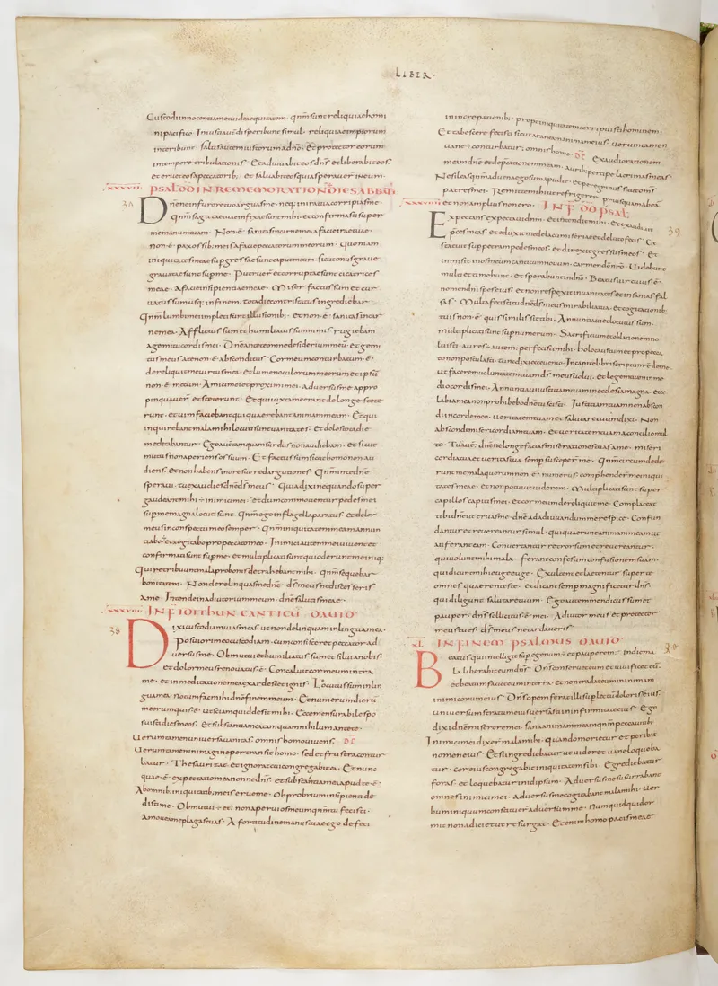 Folio 448 of the First Bible of Charles the Bald, an extant Carolingian Vulgate manuscript from the Tours scriptorium (c. 845). Approximately corresponds to Song of Solomon 8 in Vulgate book order. The folio shows the actual ninth-century Latin text and decoration as it would have been read in the Carolingian court.