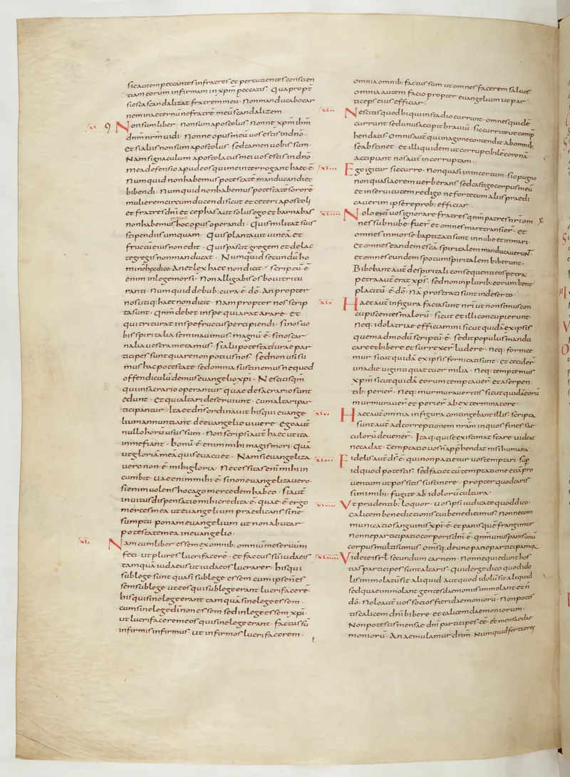 Folio 794 of the First Bible of Charles the Bald, an extant Carolingian Vulgate manuscript from the Tours scriptorium (c. 845). Approximately corresponds to Titus 2 in Vulgate book order. The folio shows the actual ninth-century Latin text and decoration as it would have been read in the Carolingian court.